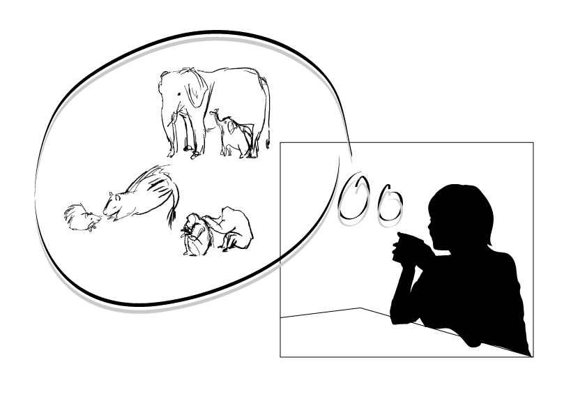 植物は地中から養分や水分をもらい、酸素や二酸化炭素を出したり取り込んだりして呼吸しています。動物は食べものを食べ、そして糞をし、なかにはそうして植物の種を運んでいきます。休んだり、子どもを育てるために、穴を掘ることもあります。